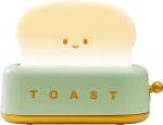 Cutest little toaster night light!I am reviewing “Toaster Lamp Cute Desk Decor Night Lamp, ICONNTECHS Kawaii LED Toast Bread Night Light Rechargeable and Portable Light with Timer for Baby Kids Girls Teens Teenages”.This is such a cute little night light. I got this toaster night light in the light green color, with gold colored accents that match perfectly with the toaster theme. The small lever on the side controls the light which can be dimmed, or set on a 15 minute timer. The entire thing is made of good quality plastic and it is light weight yet seems sturdy enough. It has 4 small rubber feet on the bottom.It comes with a USB cord to charge it. It arrived charged and ready to use which was nice. I think this would make a good gift for anyone that enjoys a little whimsy in their life. It’s such an adorable night light and I’m pleased with the overall quality. I love it.